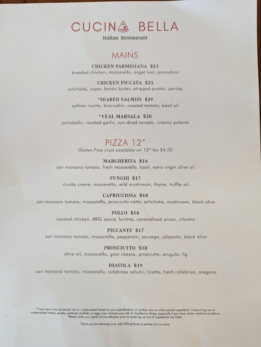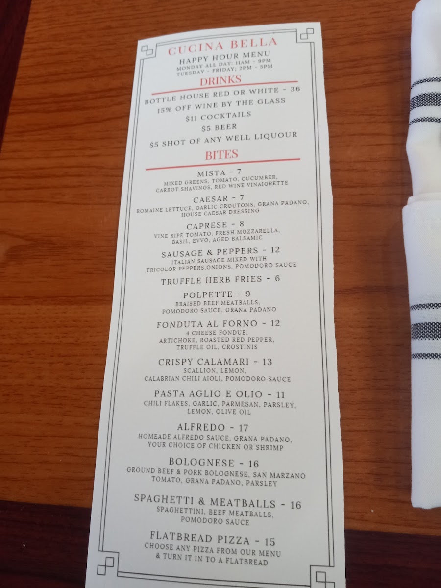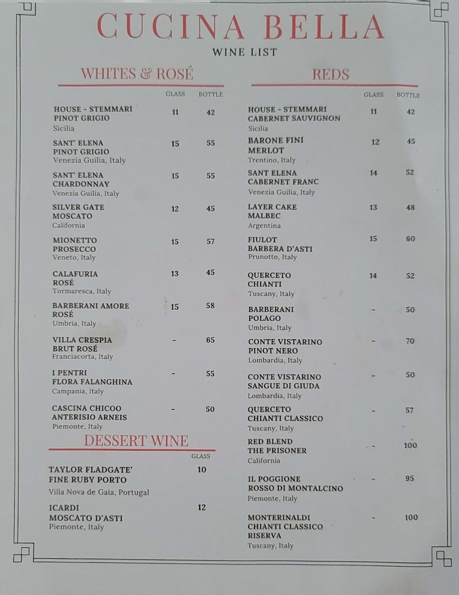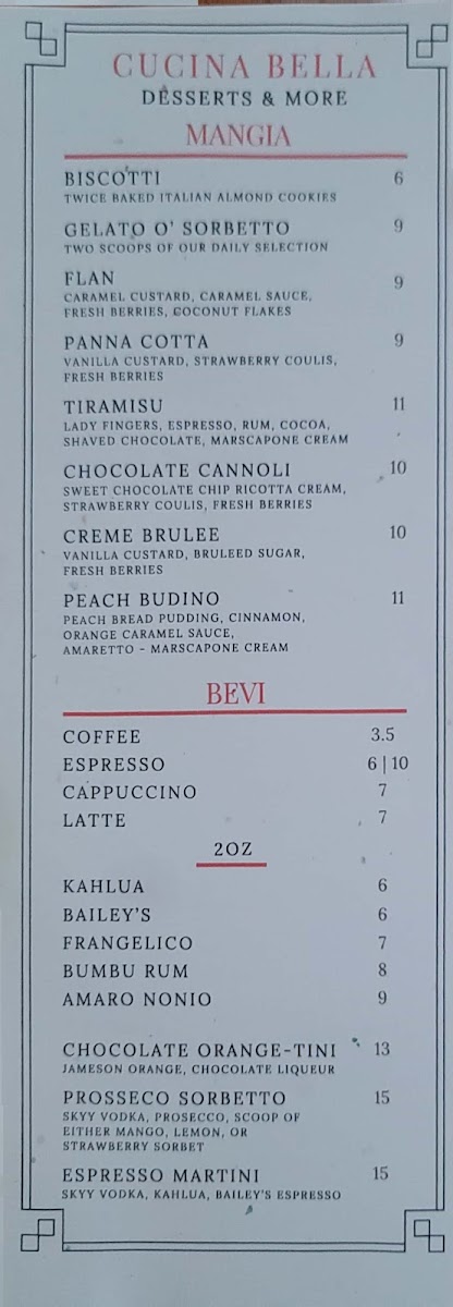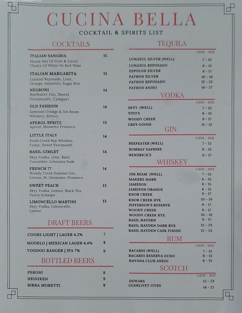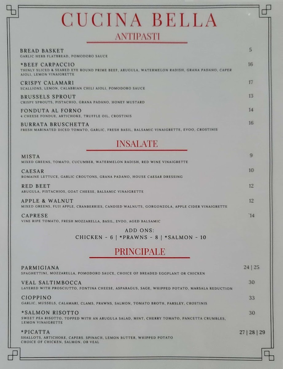 The menu at Cucina Bella offers a thoughtfully curated selection of classic Italian dishes presented with a comforting, approachable touch. Whether you're settling in for a relaxed dinner or stopping by for a casual lunch, the options blend familiar favorites with a few inspired twists that invite leisurely enjoyment.